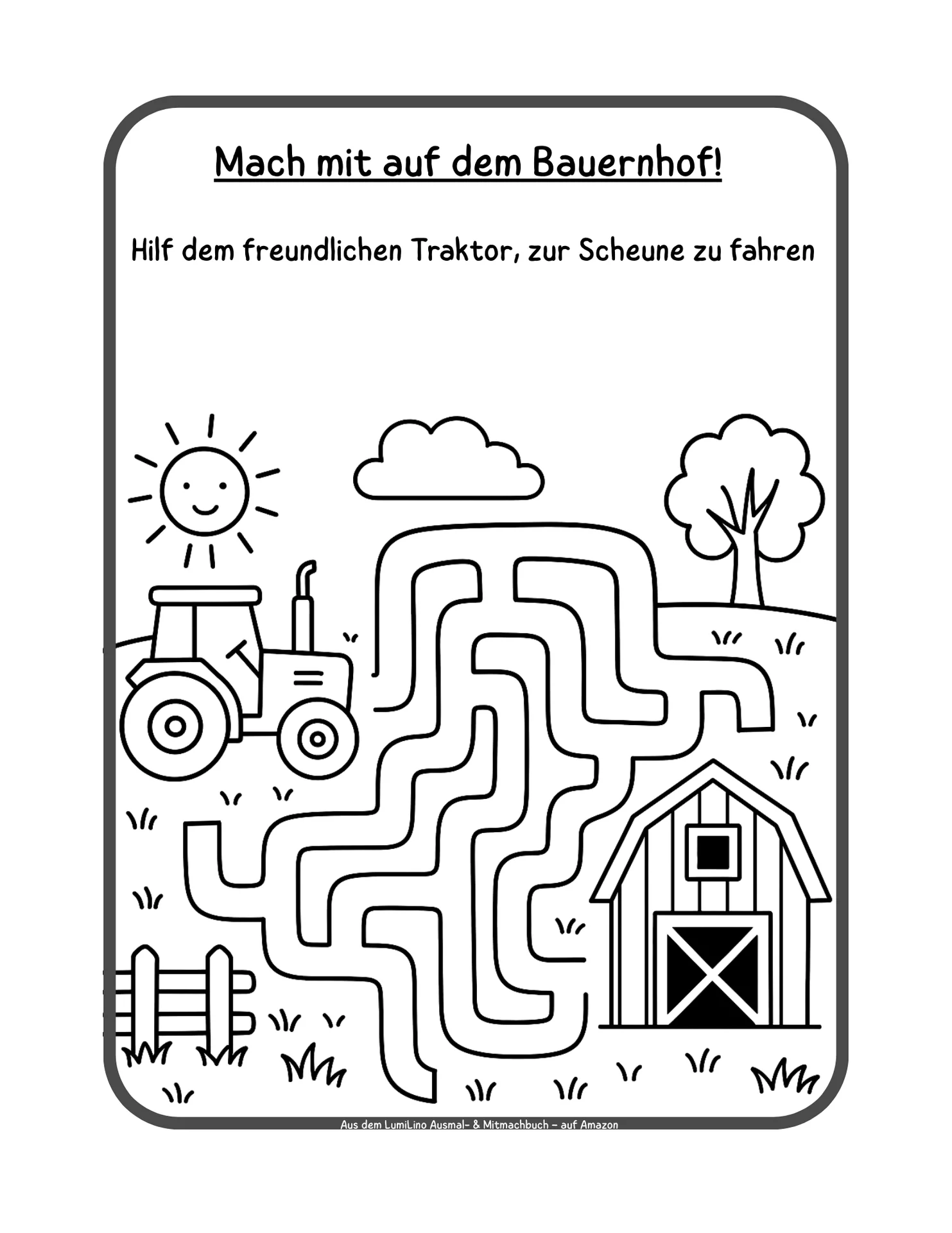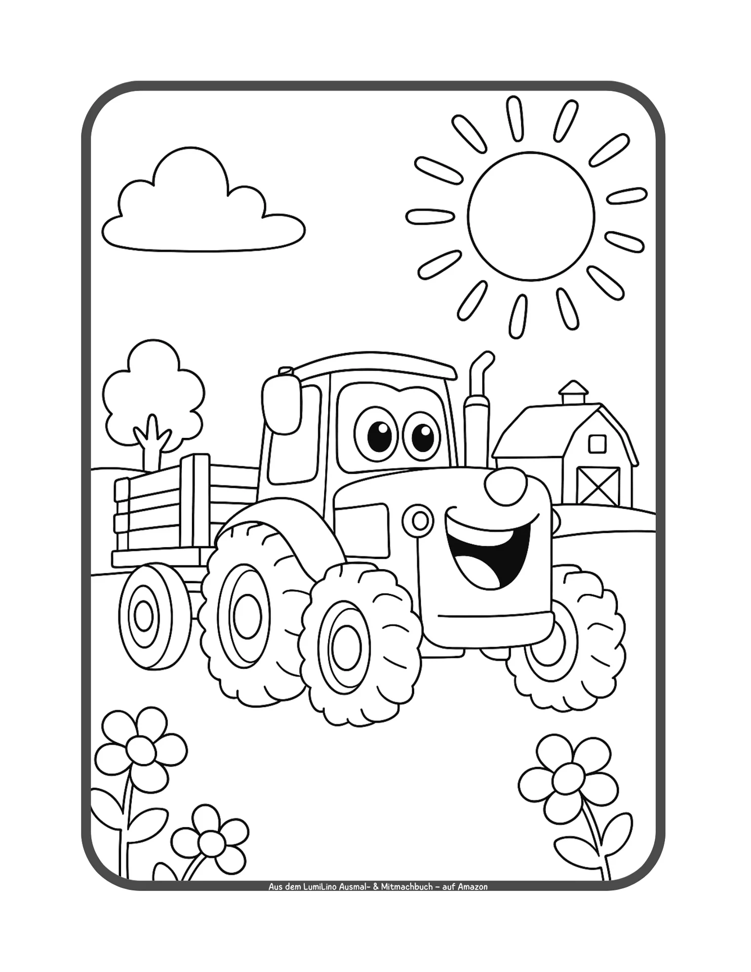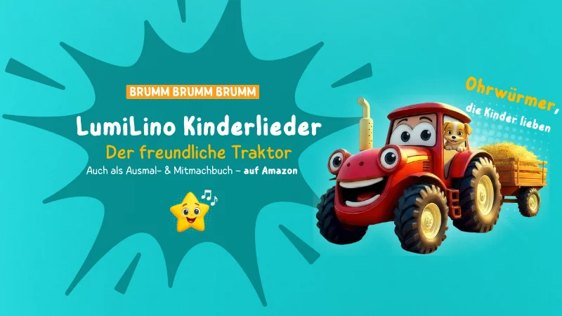 Viele Kinder mögen unseren Traktor aus dem Video so sehr, dass die Idee für ein Ausmal- und Mitmachbuch fast von selbst entstanden ist. Wir wollten etwas schaffen, das Kinder nicht nur anschauen, sondern selbst gestalten können.
